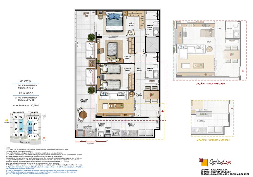 Lazer: - Salão de festas com copa - Fitness - Espaço churrasqueira com forno de piz...
