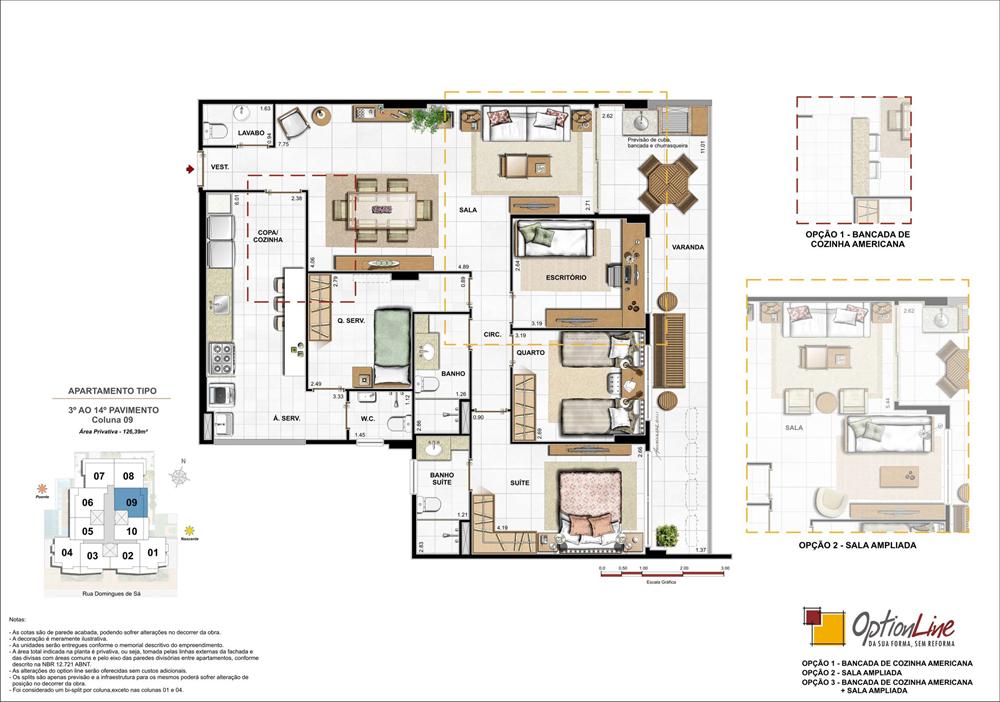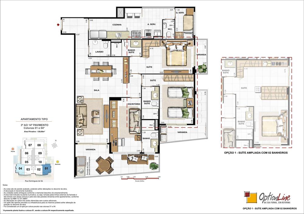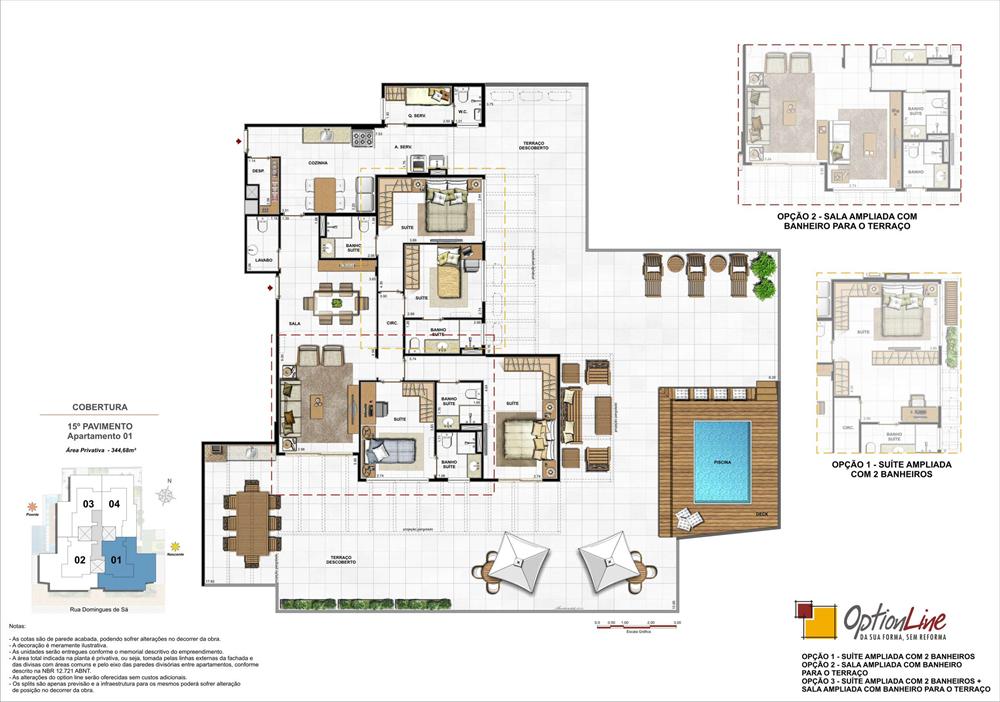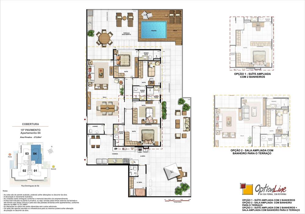 Apartamentos tipo de 95m² a 133m² Coberturas lineares com 4 suítes de 273m² a 347m²