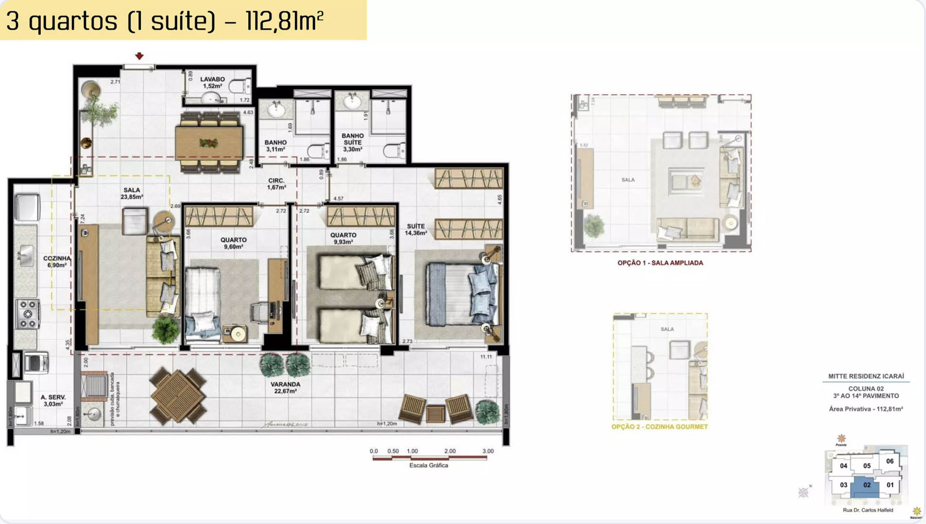 Apartamentos tipo de 95m² a 133m² Coberturas lineares com 4 suítes de 273m² a 347m²<...