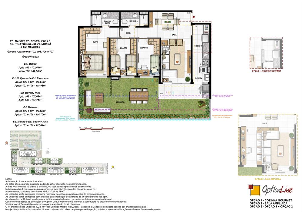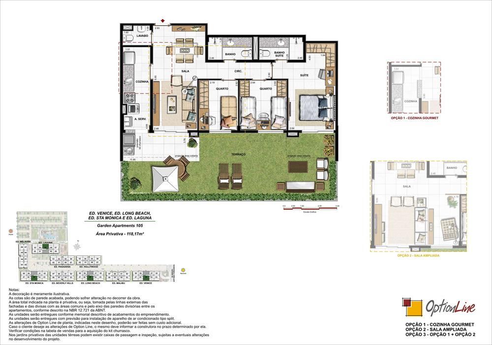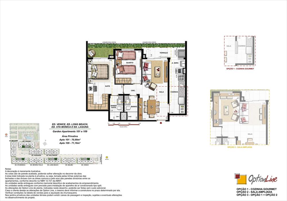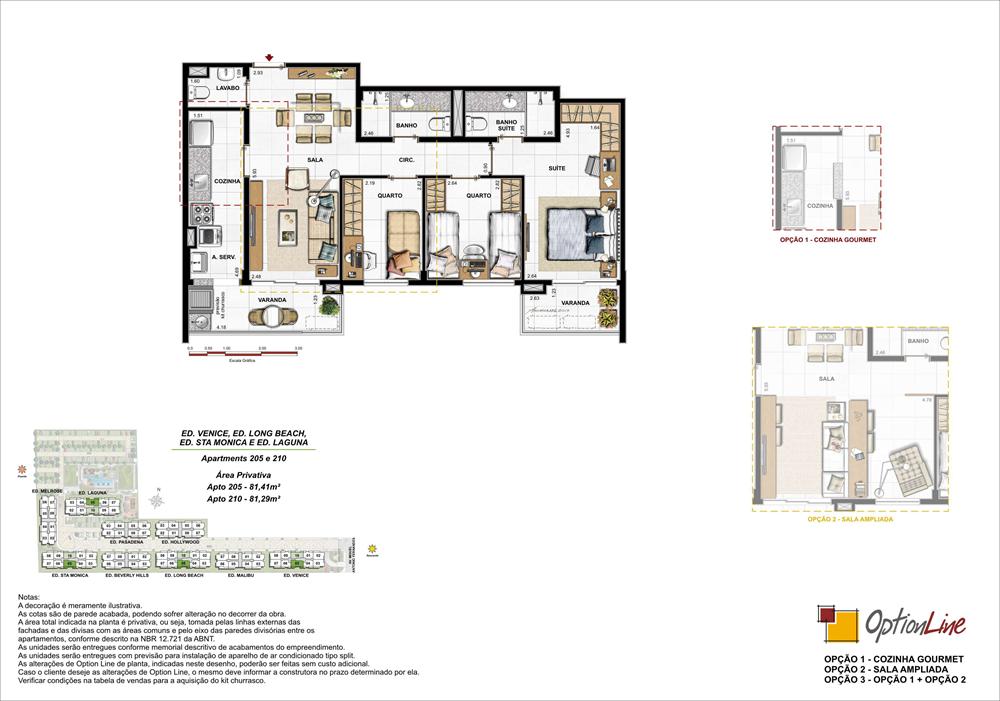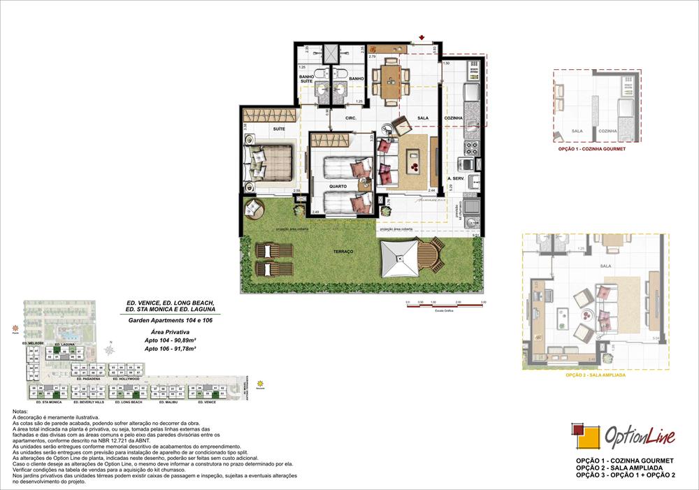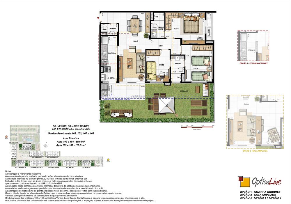 Apartamentos de 2 e 3 quartos e coberturas duplex de 3 e 4 quartos.