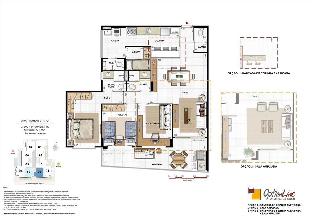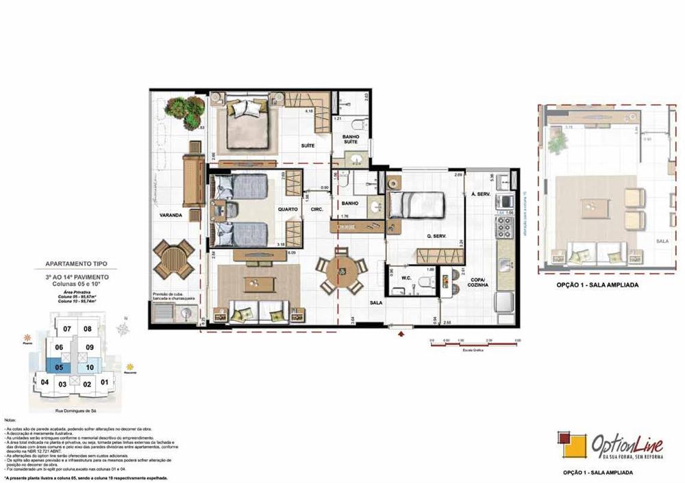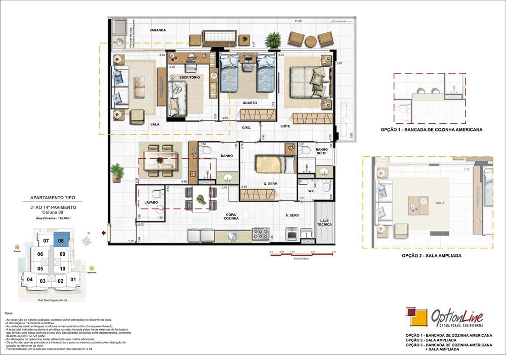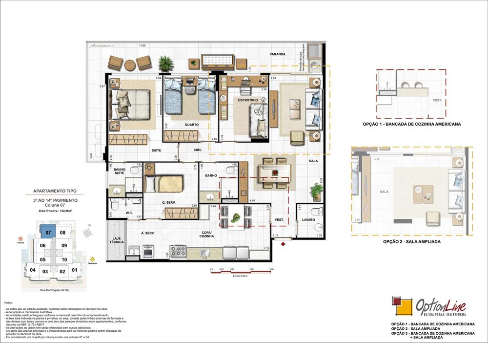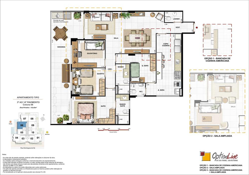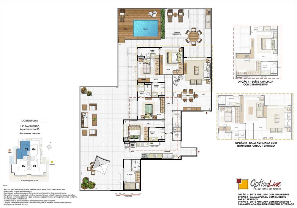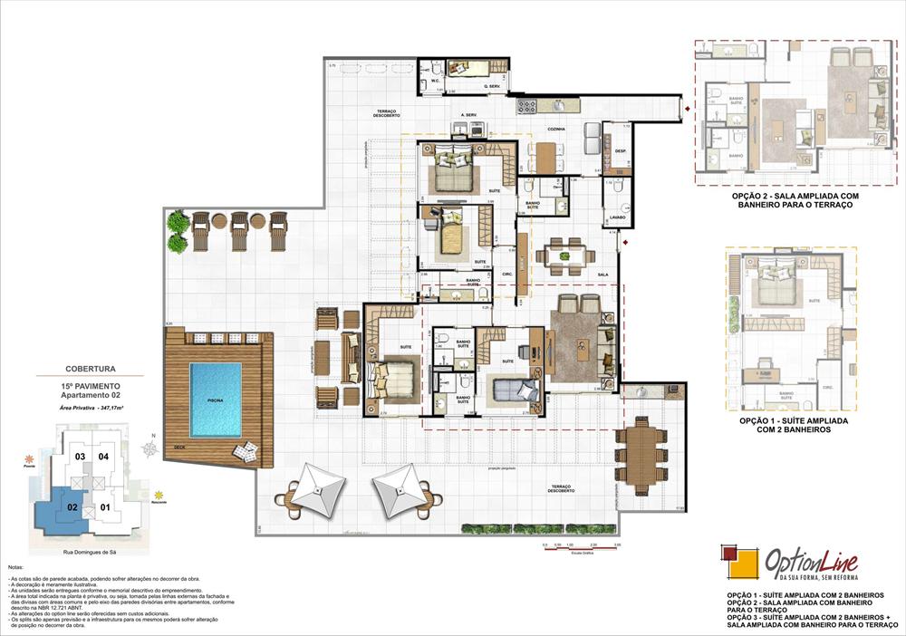 Apartamentos tipo de 95m² a 133m² Coberturas lineares com 4 suítes de 273m² a 347m²