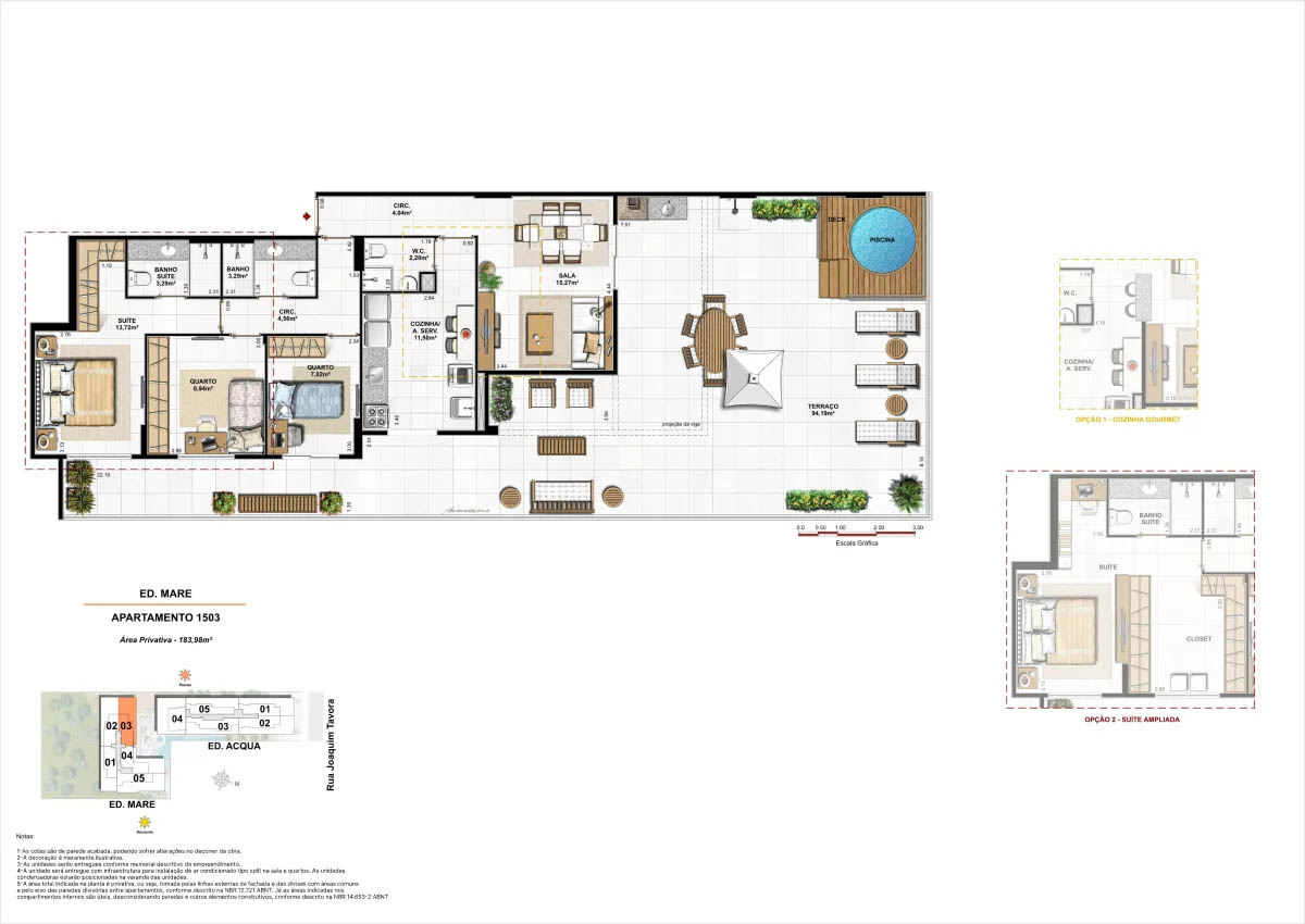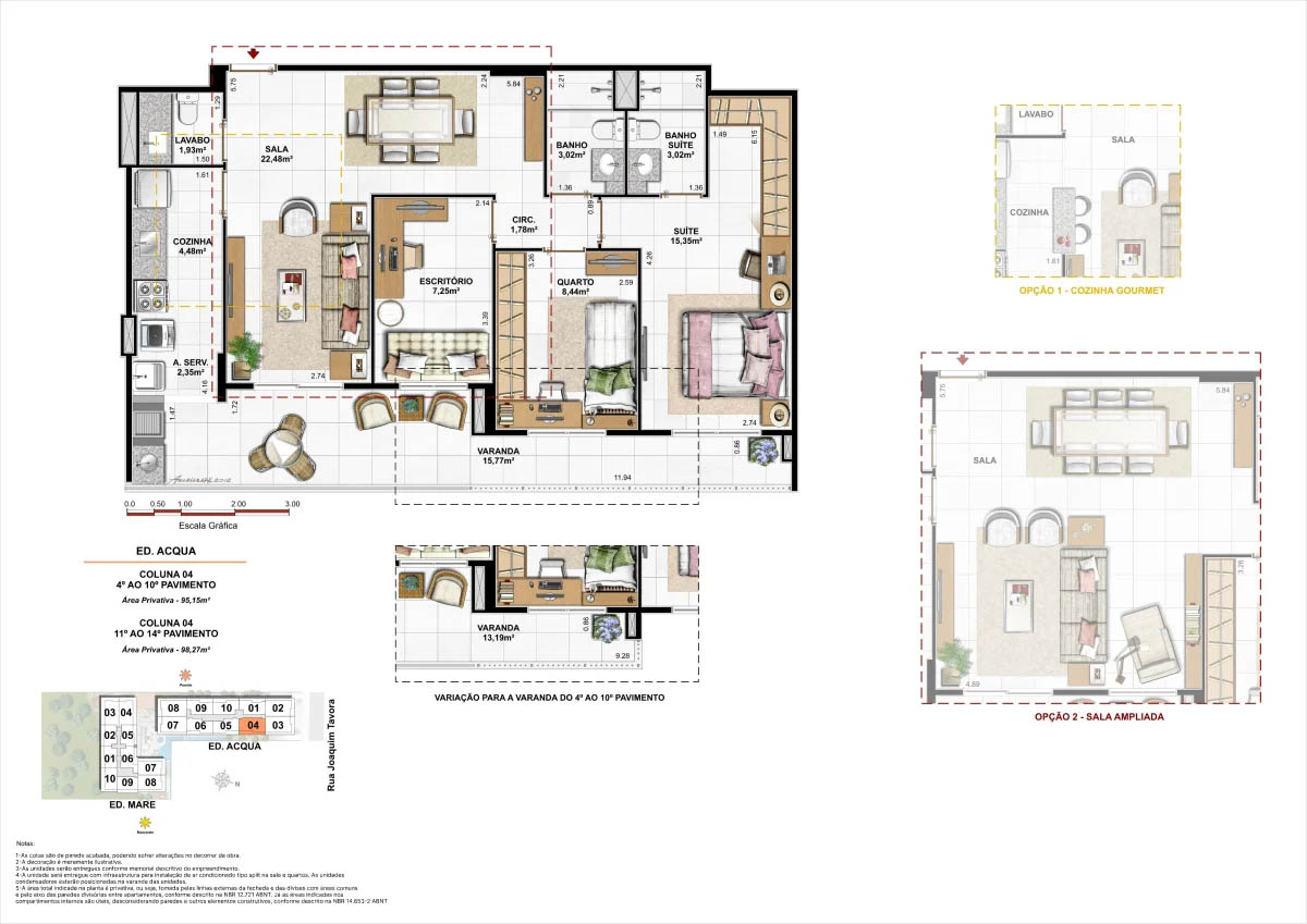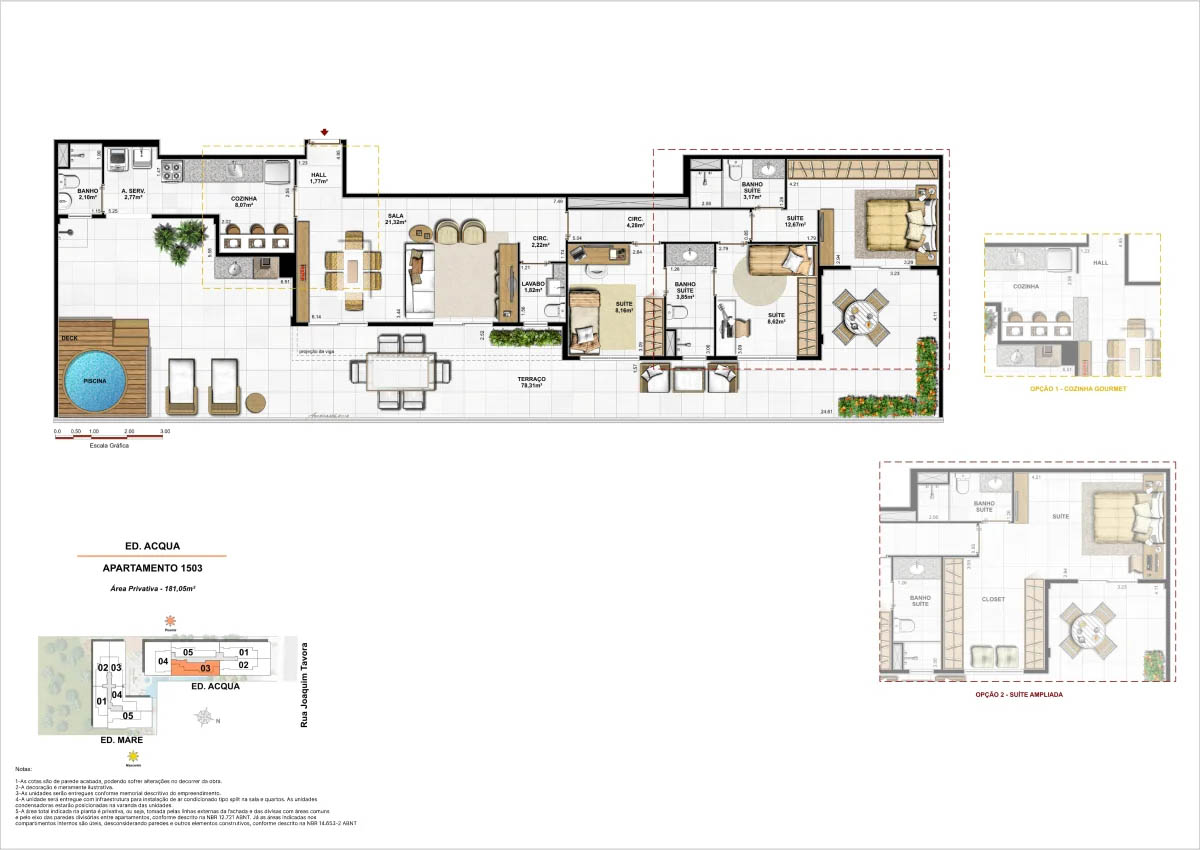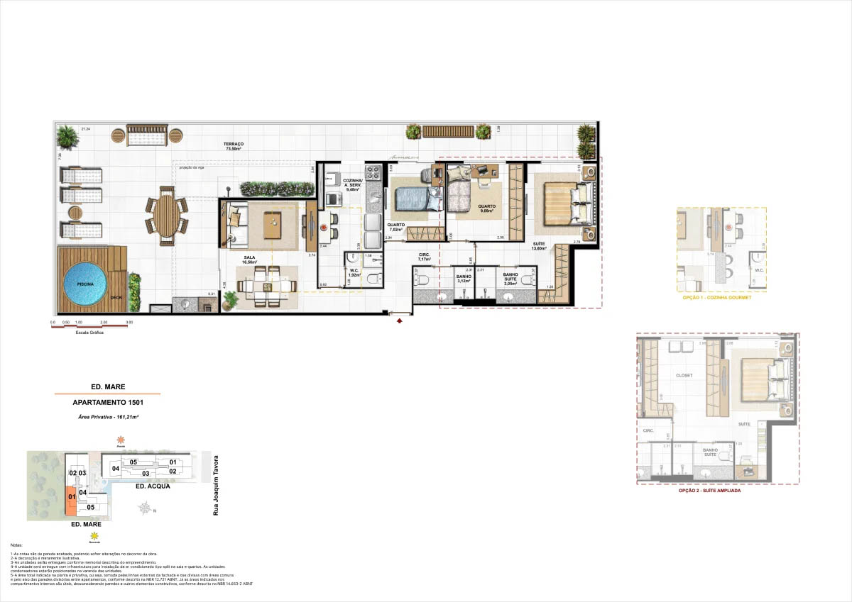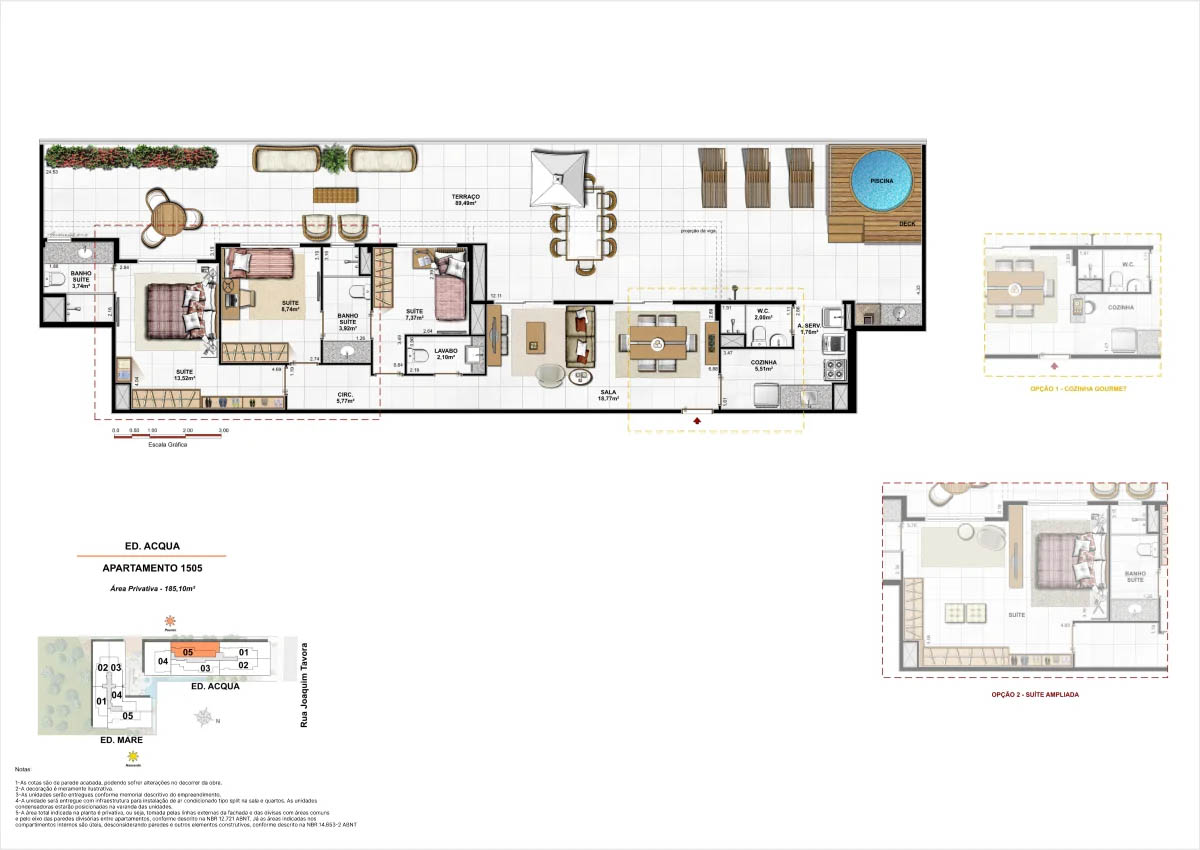 Apartamentos tipo de 95m² a 133m² Coberturas lineares com 4 suítes de 273m² a 347m²<...