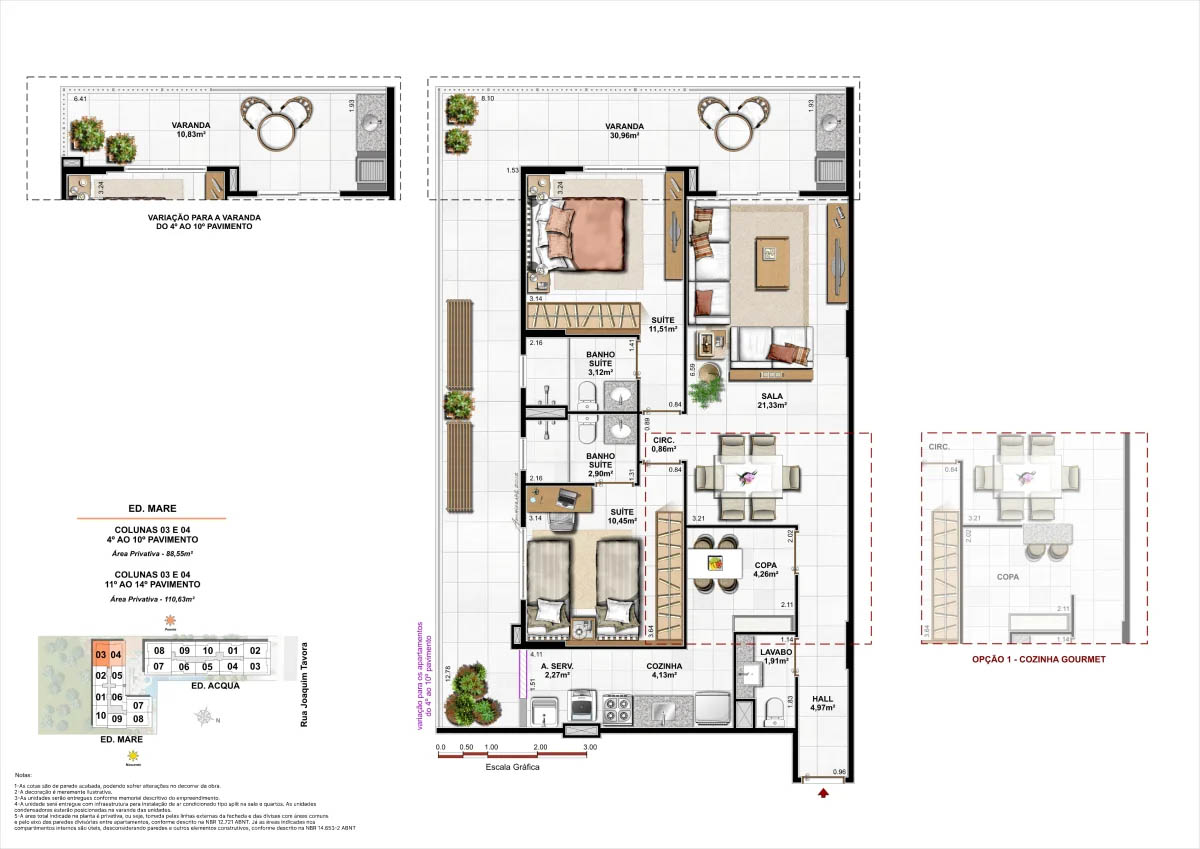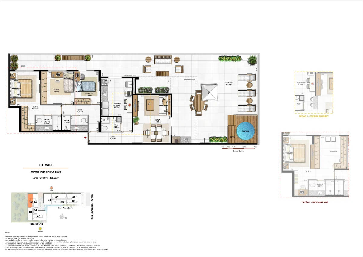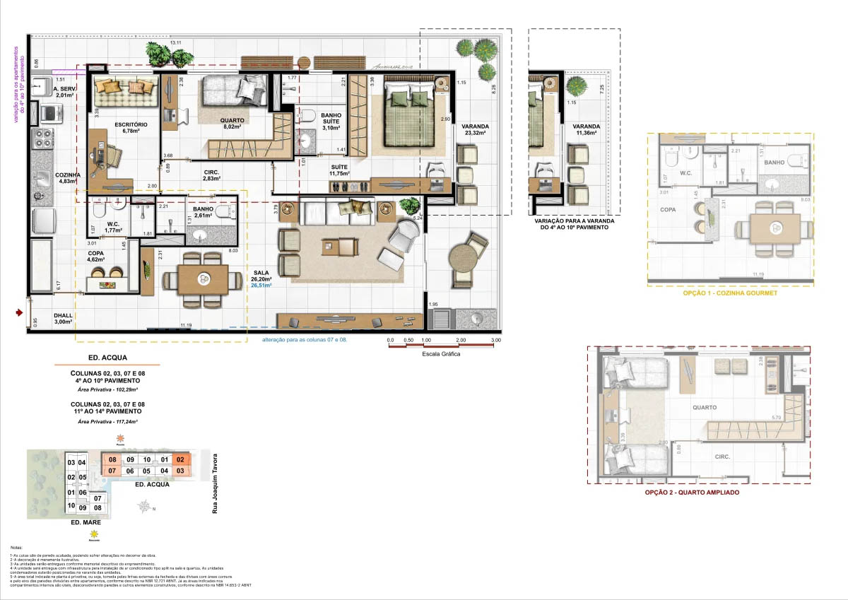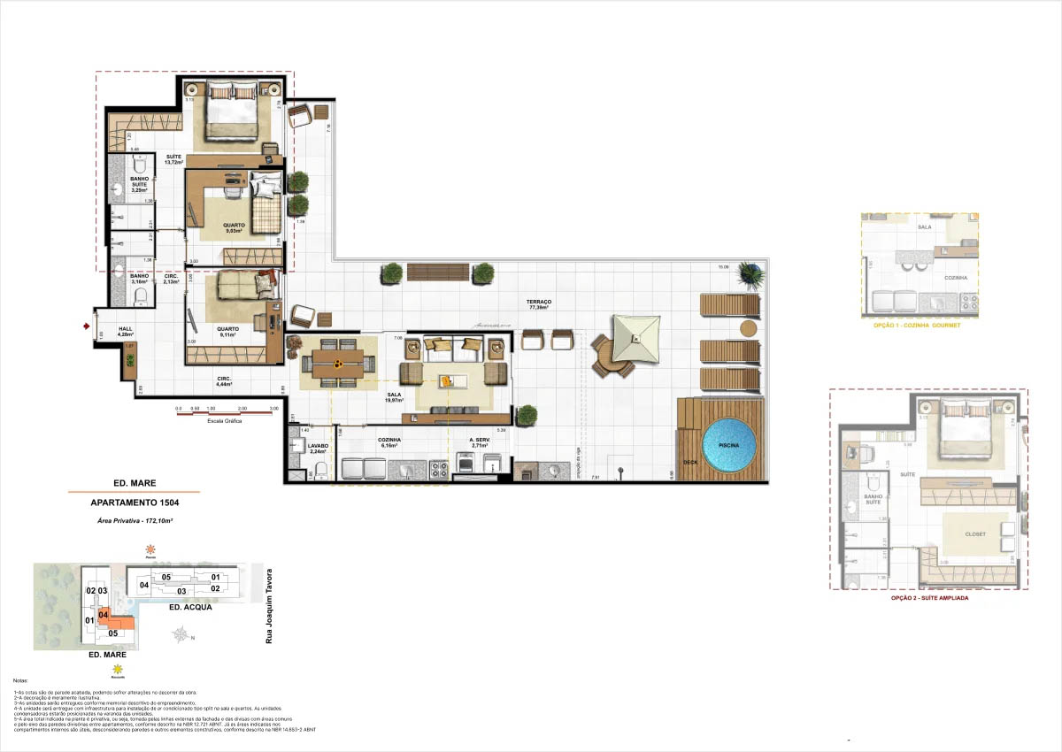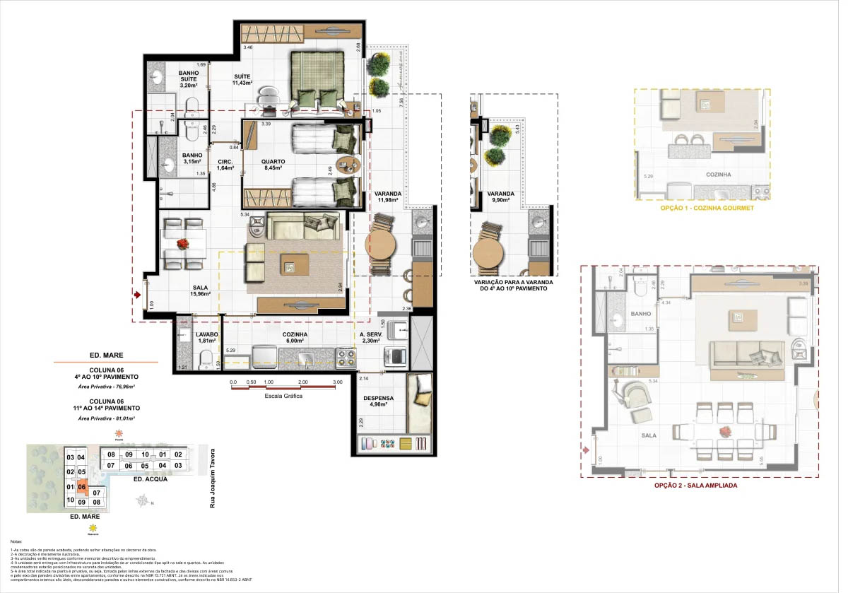 Apartamentos tipo de 95m² a 133m² Coberturas lineares com 4 suítes de 273m² a 347m²<...