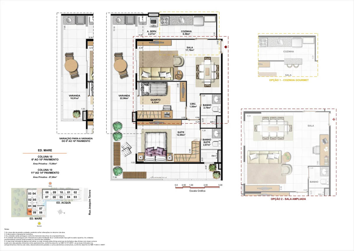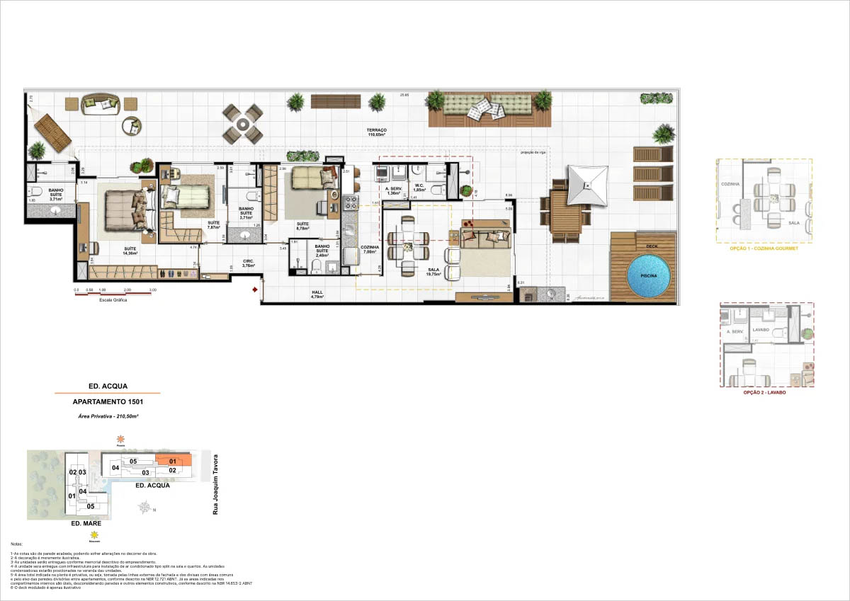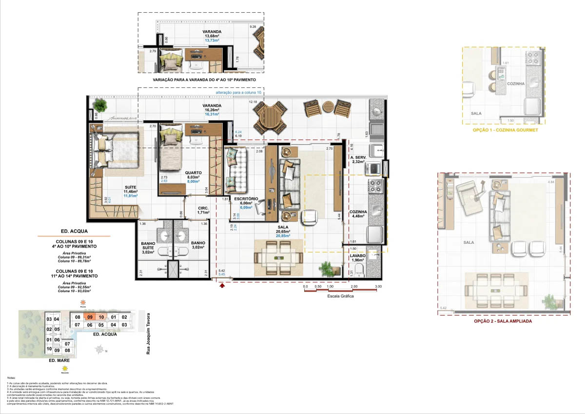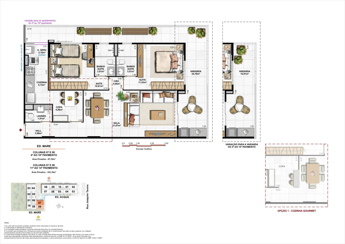 Apartamentos tipo de 95m² a 133m² Coberturas lineares com 4 suítes de 273m² a 347m²<...