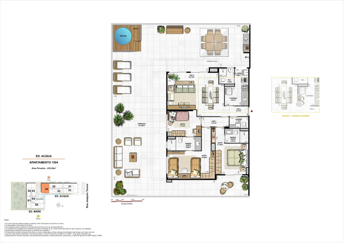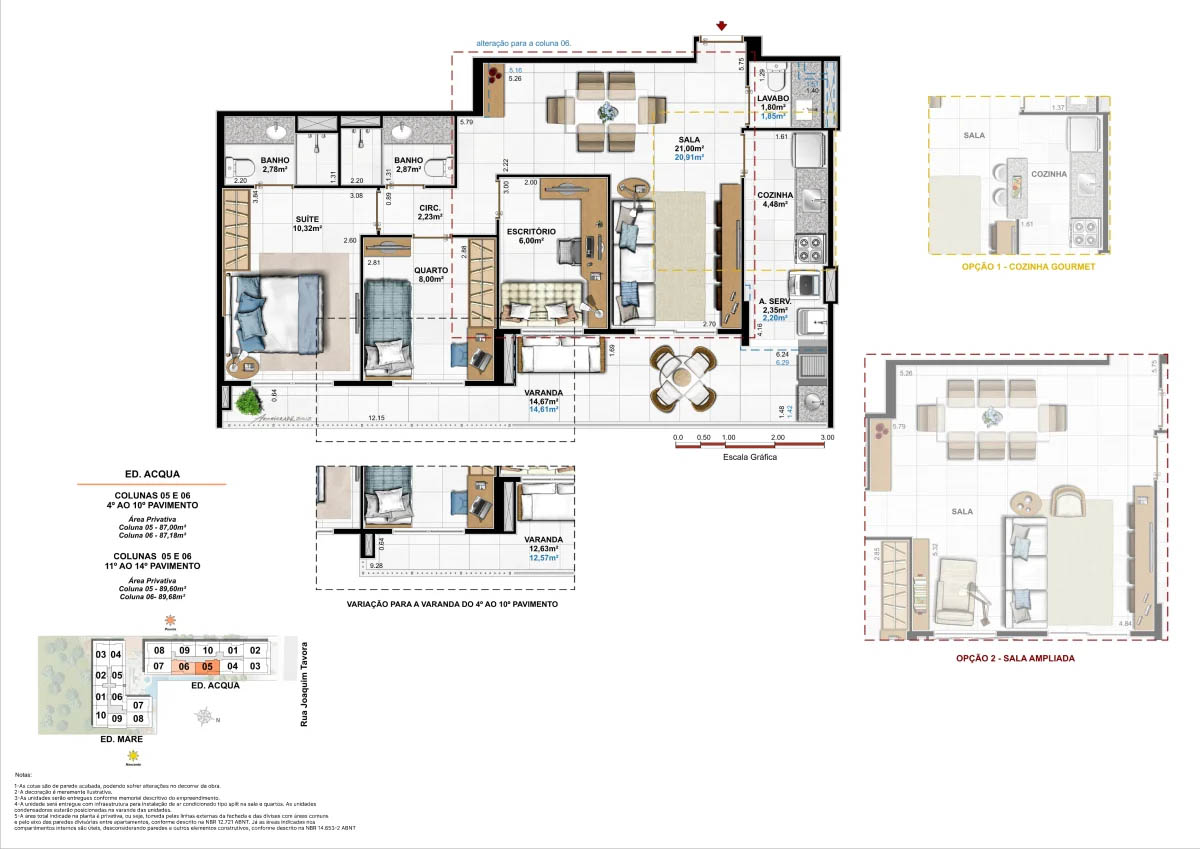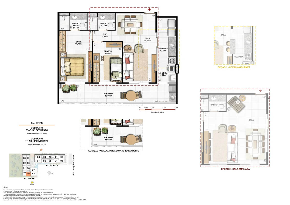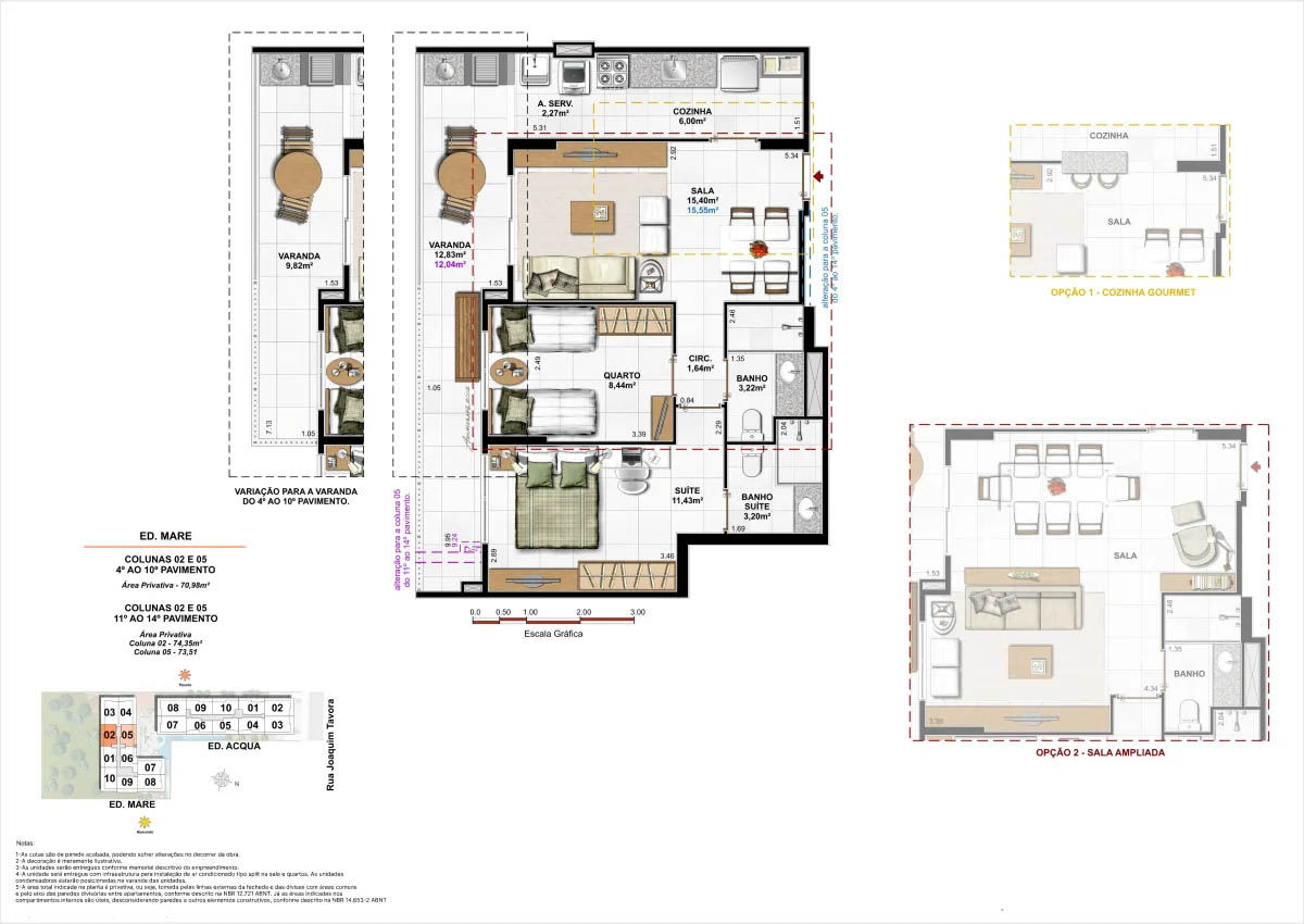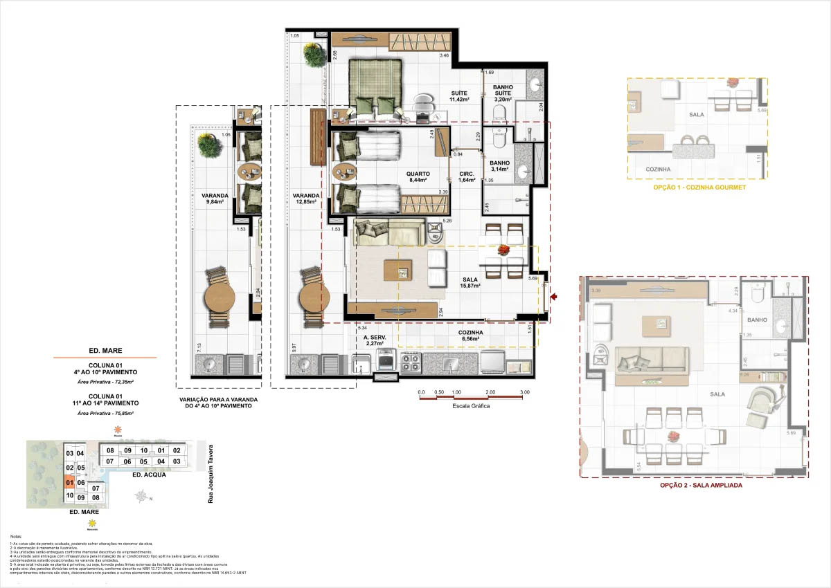 Apartamentos tipo de 95m² a 133m² Coberturas lineares com 4 suítes de 273m² a 347m²<...